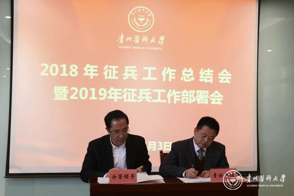 战勇全面通报了2018年太阳成征兵工作的开展情况、征集情况,对太阳成2018年征兵工作进行总结。按照全省征兵工作会议精神,安排部署了2019年征兵工作,明确了各学院征集任务和各工作阶段要求。并与各学院签订2019年征兵工作责任书。