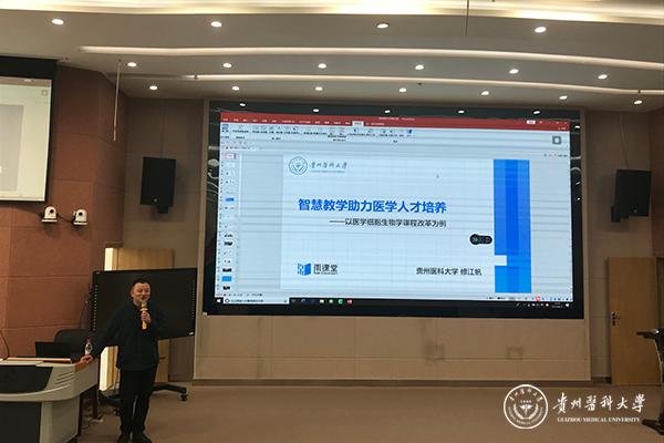 专题培训开班仪式由教师工作处处长席晓岚主持,战勇致辞,他从教育部关于提高课程教学质量的角度,强调了雨课堂智慧教学设计与混合式教学实践的重要性,提出以“雨课堂智慧教学”为契机,助推学校“金课”建设。