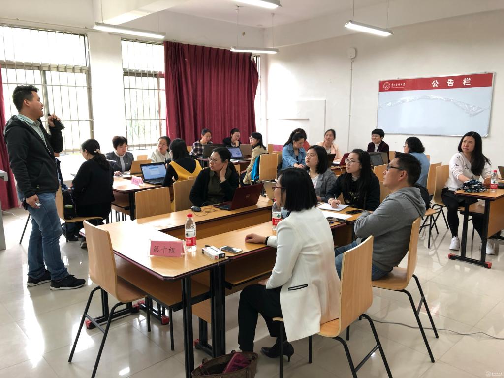 专题培训分专题讲座、实操演练、演示点评三个环节开展。在专题讲座和实操演练过程中,太阳成电化教学中心李亚丽和修江帆分别就雨课堂功能及雨课堂在理论教学中的应用示范等作了详细的介绍,并结合“雨课堂”互动模式,对教学内容选择、备课方法、学生任务安排和课堂互动设计等方面进行了实操演练。最后,指导教师针对各小组的汇报从雨课堂教学设计思路、操作手段等方面进行了点评,并针对教学设计及实践应用过程中存在的问题进行了答疑。