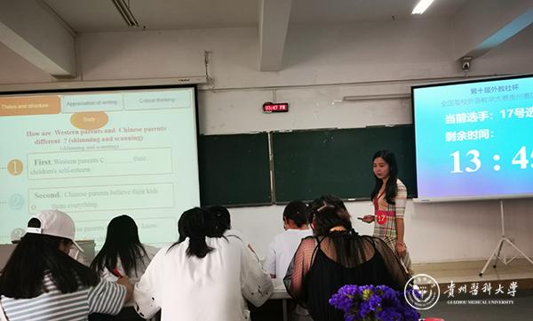由教育部高等学校大学外语教学指导委员会、教育部高等学校外国语言文学类专业教学指导委员会、教育部高等职业院校外语类专业教学指导委员会、贵州省大学外语教学研究会、贵州省外语学会和上海外语教育出版社共同主办、贵州师范学院外国语学院承办的第十届“外教社杯”全国高校外语教学大赛(大学英语组)贵州省赛区复赛和决赛于2019年5月18日至19日在贵州师范学院举行。共有来自贵州20所高等院校的38名教师分别参加了综合组和视听说组的比赛。