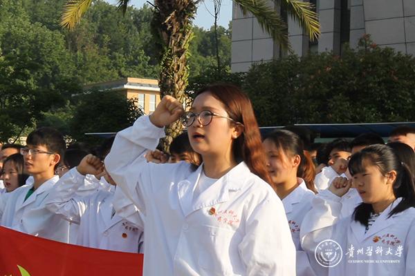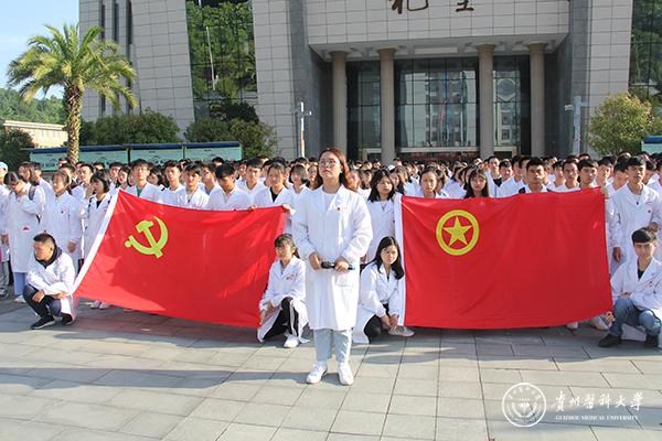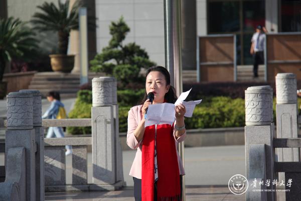 升旗仪式结束后,王之瑞在国旗下作题为《担当强国使命·成就青春时代》主题讲话。她以革命先烈李大钊的“以青春之我,创建青春之家庭,青春之国家,青春之民族,青春之人类,青春之地球,青春之宇宙,资以乐其无涯之生”和大家一起回顾了五四运动100年来中国青年外争主权,内除国贼,拯救民族危亡的中国革命历史。王之瑞希望,同学们要爱国,做一个心怀天下、有家国情怀的人;要励志,做一个志存高远、有理想信念的人;要求真,做一个实事求是、与时俱进的人;要力行,做一个脚踏实地、笃实力行的人;同时勉励同学们铭记“兴药为民”的时代责任,秉承“诚於己,忠于群,敬往思来”的校训,奉行“大医精诚”的精神,践行医学生誓词,立志成才,锐意进取,追梦奋斗,为药学院增光,为贵医争光,为国旗添彩,以实际行动和优异成绩庆祝祖国70华诞。