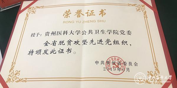 公共卫生学院党委以习近平新时代中国特色社会主义思想为指导,紧紧围绕省委、省政府、省教育工委关于脱贫攻坚的安排部署,在学校党委的指导下结合自身专业特长,坚决扛起脱贫攻坚责任,聚焦消除地方病,全力推进健康扶贫,为促进贵州地方病防控、落实医疗扶贫责任作出了巨大努力。一是先后选派多名政治素质高、业务能力强的干部、教师奔赴松桃、三穗、从江等地,开展帮扶工作。二是聚焦地方病、慢性病防治。在少数民族偏远地区开展地氟病/地砷病患者及高危人群多脏器损伤、远期致癌效应的治疗、预防、控制工作,开展慢性病防控工作,有效解决了部分农村因病致贫、因病返贫的难题,为保障全民健康,促进全面小康做出了积极努力。