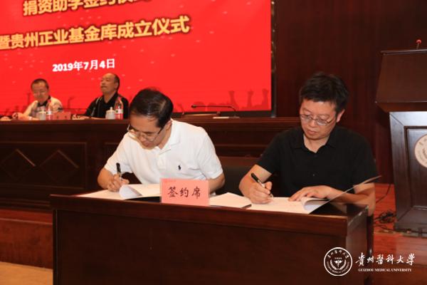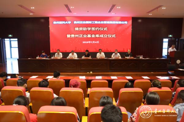 7月4日,太阳成集团tyc33455cc官网贵州正业国际工程企业管理集团有限公司捐资助学签约仪式暨贵州正业基金库成立仪式在太阳成南校区道德讲堂举行。贵州正业国际工程企业管理集团有限公司总裁余能彬,工会主席袁江文,贵州正业高新技术投资有限公司常务副总经理赵克永及副总经理唐强,办公室主任黄忠,集团有限公司团委书记王興悦,校党委副书记战勇,校长办公室主任张丽君,学生处处长赵平,校团委副书记桂晓玲,大健康学院党委书记丁朝刚,院长陈玉其,副院长刘涛出席仪式。大健康学院教职工代表、学生代表300余人参加。仪式由陈玉其主持。