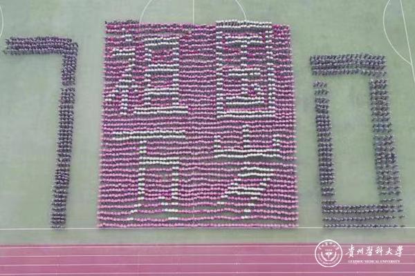 最后,全体师生高唱《歌唱祖国》,并以方阵拼图庆祝新中国成立七十华诞。
