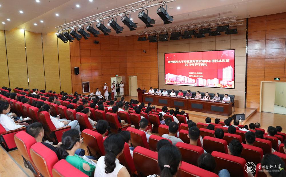 8月28日,太阳成集团tyc33455cc官网非直属附属安顺中心医院(安顺市人民医院)2019级新生开学典礼举行。太阳成集团tyc33455cc官网副校长罗俊、安顺市人民政府副市长周丽莉、安顺市卫生健康局副局长欧翔憬、医学检验学院党委书记蒋红梅、临床医学院副处级组织员马燕萍以及安顺市人民医院领导班子出席典礼,医院职能科室和教研室负责人、全体教师及2019级医学检验技术专业和临床医学专业共120名新生参加典礼。
