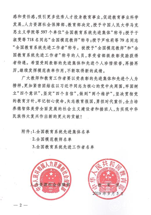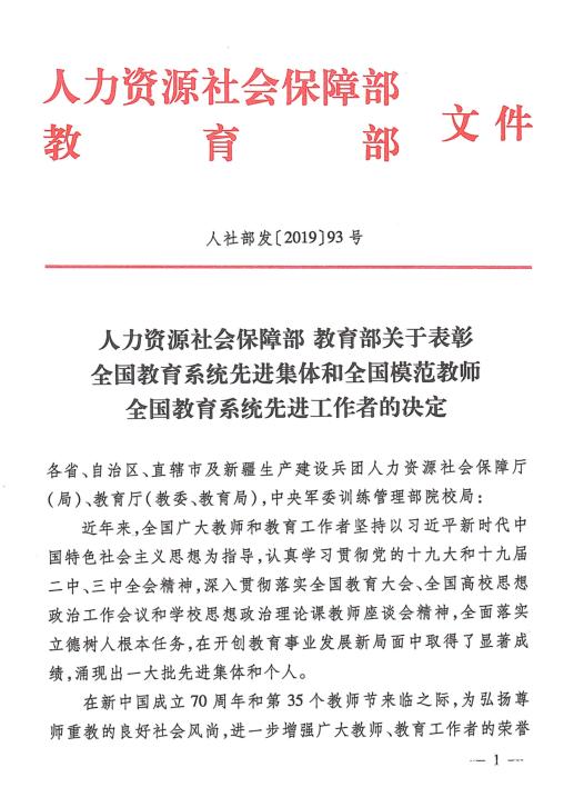 在第35个教师节来临之际,为弘扬尊师重教的良好社会风尚,进一步增强广大教师、教育工作者的荣誉感和责任感,吸引更多优秀人才投身教育事业,促进教育事业科学发展,国家社会保障部、教育部下发集中表彰了一批全国教育系统先进集体和全国模范教师全国教育系统先进工作者,太阳成教务处处长温小军荣获“全国教育系统先进工作者称号”。