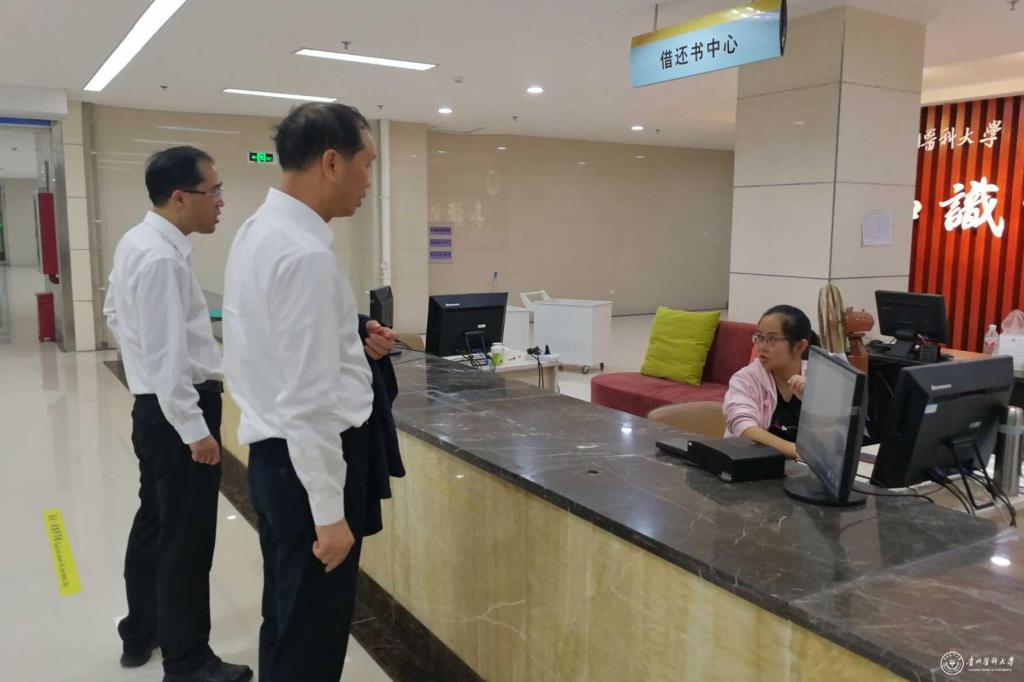 9月29日晚,党委书记林昌虎到南校区图书馆实地走访,深入了解学生晚自习情况,党委副书记战勇陪同。