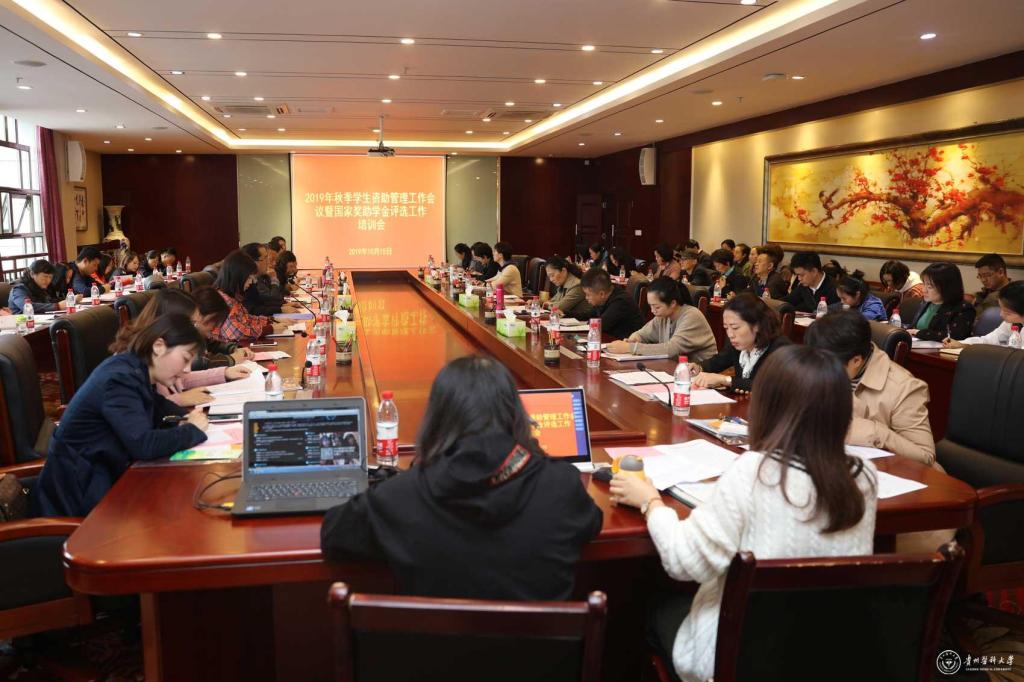 资助中心贲琛副主任在会上领学了《贵州省家庭经济困难学生认定办法》、传达《省教育厅 省财政厅 省扶贫开发办公室 省人力资源社会保障厅关于做好2019-2020学年教育精准扶贫学生资助工作的通知》精神。毕维对2019-2020学年贫困生认定工作进行了汇报,高荣苹对贵州省教育精准扶贫系统进行了全面、系统的讲解,并对系统的应用及操作进行现场培训。