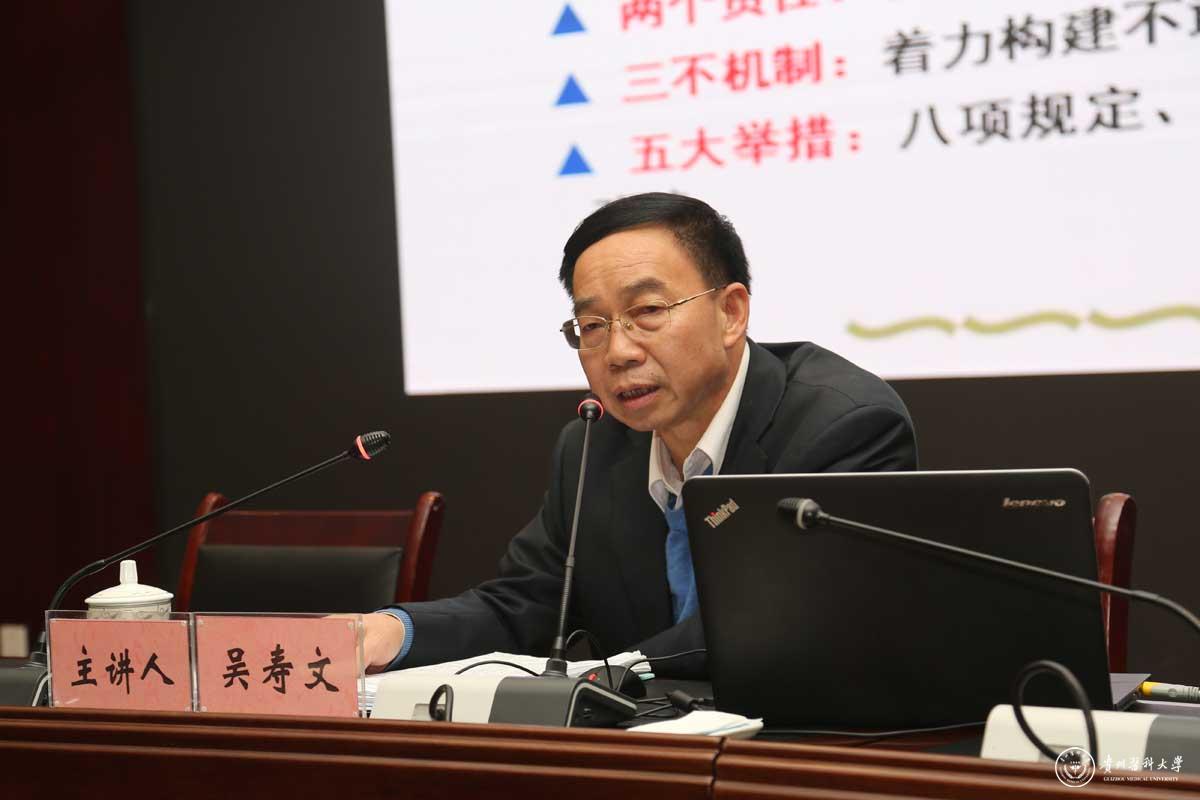 省纪委省监委派驻第十一纪检监察组组长、省教育厅党组成员吴寿文作《把握全面从严治党新要求 坚守纪律底线 筑牢拒腐防线》专题讲座。讲座紧扣贯彻落实全面从严治党总要求,运用丰富详实的事例,体现党对干部的严管和厚爱,警醒广大干部要增强纪律意识、政治意识和法律意识,在拒腐防变、廉洁自律上做到思想自觉和行动自觉。