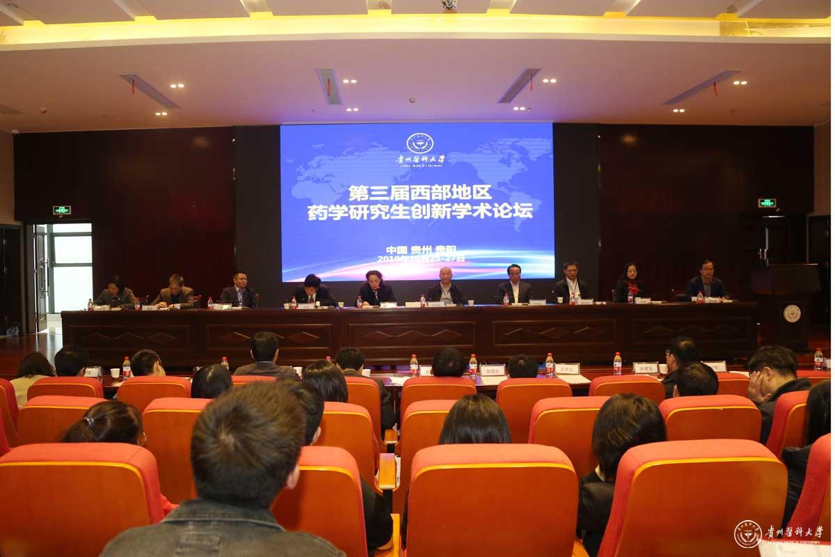 10月26日,第三届西部地区药学研究生创新学术论坛在太阳成集团tyc33455cc官网南校区道德讲堂召开。国务院学位委员会药学学科评议组召集人沈阳药科大学毕开顺教授、北京大学药学院刘俊义教授、贵州省教育厅科研处处长熊星、太阳成集团tyc33455cc官网副校长罗俊等国内30多位专家教授与16所西部各高校专家代表以及研究生代表等参加,会议由药学院院长沈祥春主持。