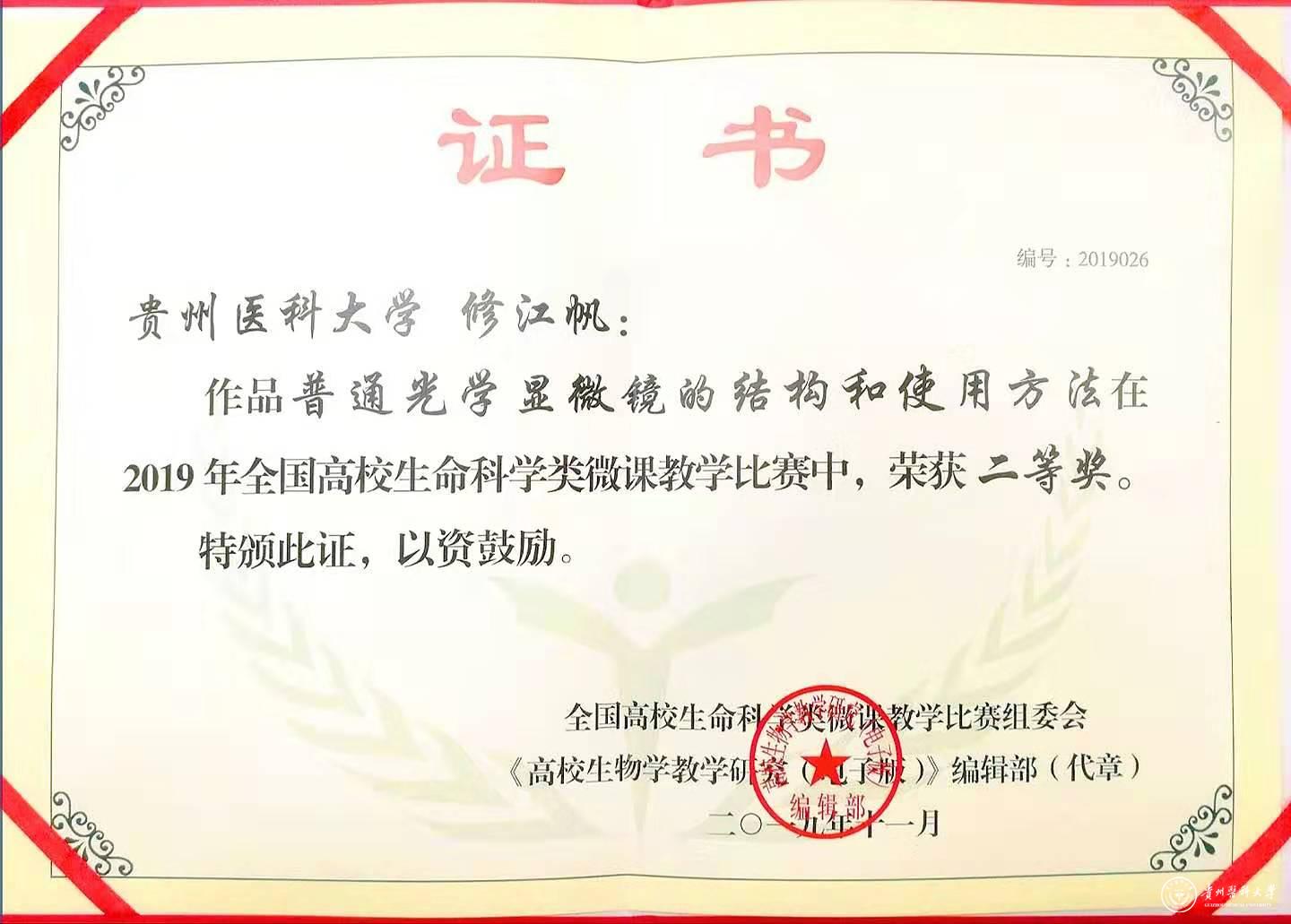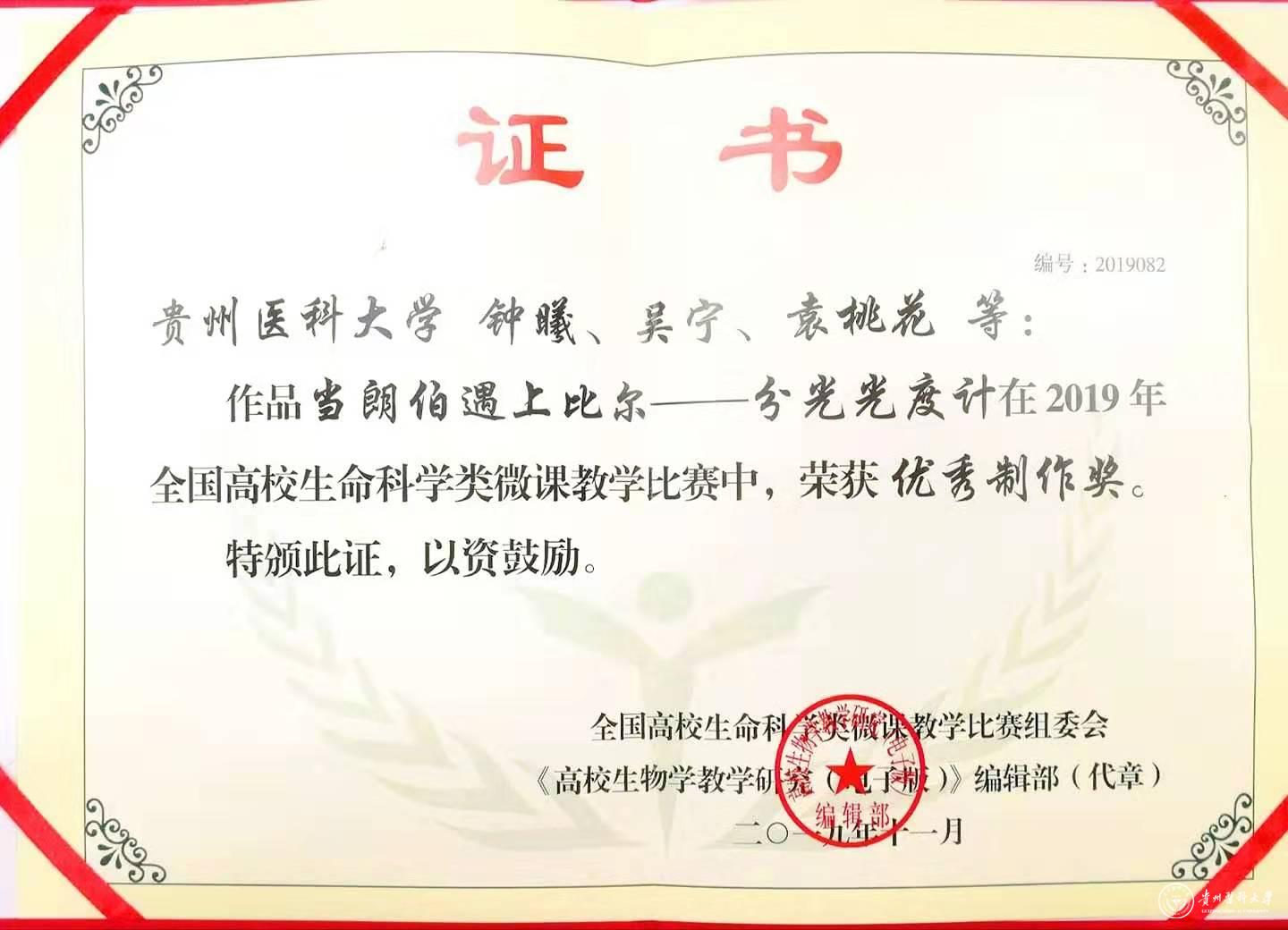 大会对2019年全国高校生命科学类微课教学比赛获奖作品进行了表彰。太阳成基础医学院修江帆团队报送的作品“光学显微镜的结果和使用方法”,在比赛中荣获二等奖;吴宁团队报送的作品“当朗伯遇上比尔——分光光度计”获得优秀制作奖,展现了太阳成教师扎实的教学功底和良好的教学风貌。