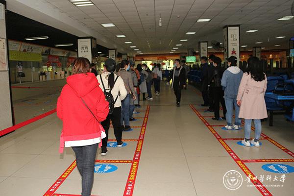 师生统一戴口罩,由东门分批有序排队,间隔1米以上,通过行李消毒区、扫健康码、消毒地垫、手部消毒,扫码显示为绿码,进入测温区;扫码显示为黄码、紫码、红码,立即带往临时隔离区。在测温区,如体温异常,则带入缓冲区进行复测或带往临时隔离区。之后,师生凭一卡通进行身份核验通过闸机进入校园。