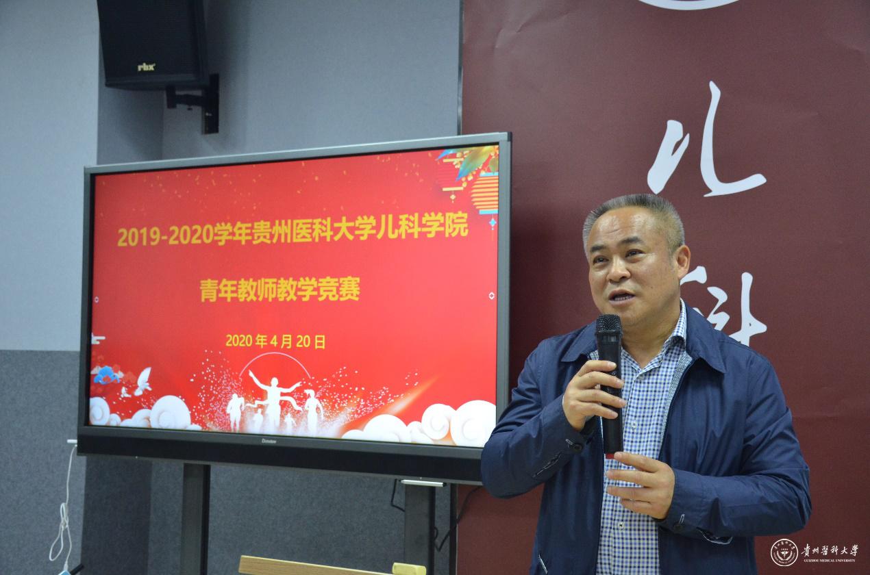 田晓滨致辞。他指出,儿科学院高度重视和大力支持教师教学竞赛,青年教师教学讲课比赛是学校内涵建设的重要体现,是提升教学质量的重要环节。