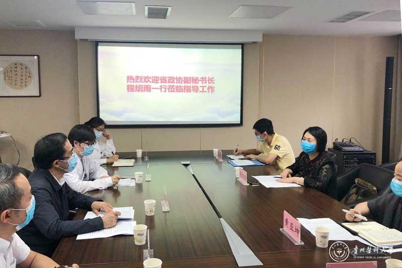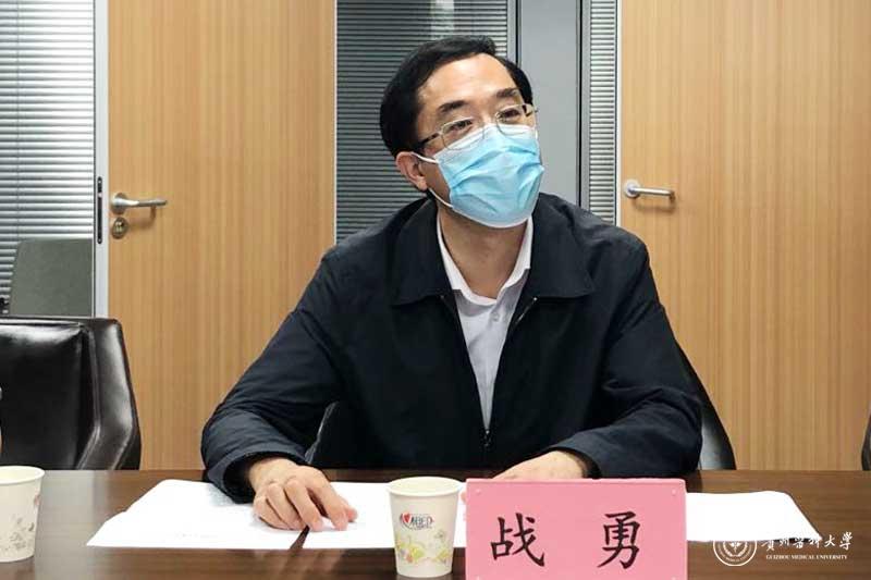 战勇代表学校党委对程绍雨一行来校调研表示热烈欢迎,并感谢九三贵州省委长期以来对太阳成的关心和支持。他介绍了九三贵医委员会在教学、科研、志愿服务、组织发展等方面的情况及取得的收获,特别是在2020年初爆发的新冠病毒肺炎疫情的特殊情况下,九三贵医委员会全体社员全力以赴,积极参与到抗击疫情一线工作中并做出贡献。希望九三贵医委员会再接再厉,同时希望学校和附属医院在未来发展中,能得到九三省委及相关部门一如既往的支持和帮助。