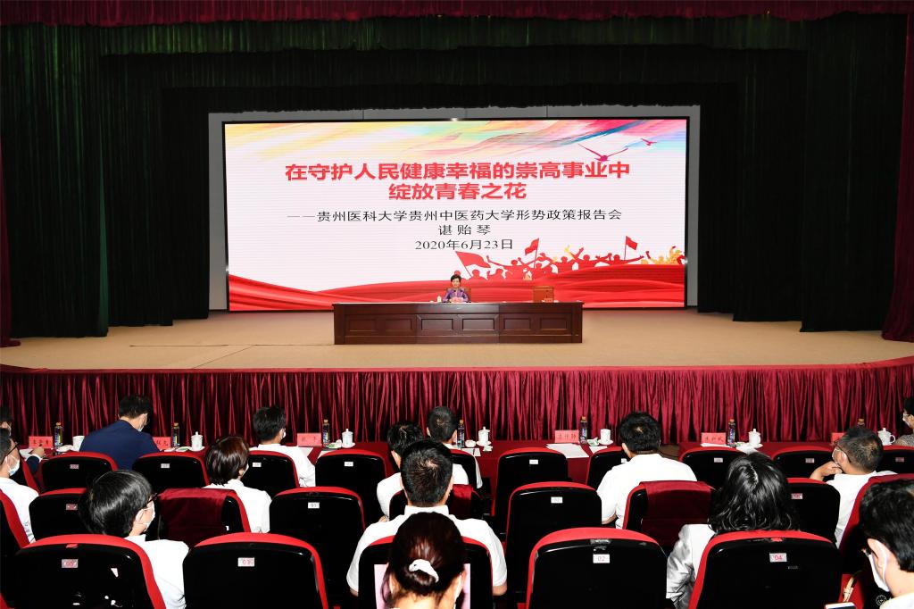 校党委副书记、校长罗鹏:贻琴省长到太阳成为全校师生作形势政策报告,充分体现了省委、省政府对太阳成的关心关爱,对贵州医疗卫生教育事业的高度重视,让我们深感使命光荣、责任重大。省长的报告层次分明、内容丰富、案例详实、阐述精辟,是一堂深刻又生动的形势政策教育课和思想政治教育课。我们将进一步认真学习贯彻报告会精神,结合学校办学特色和重点工作,以主人翁的精神、建设者的担当,统筹兼顾、凝聚力量,不断深化教育教学改革,推进学科专业建设,大力推进“双一流”建设,创新人才培养模式,加强高层次人才培养,为贵州医疗卫生教育事业的发展提供人才保障和智力支持,为贵州经济社会发展做出更大贡献。