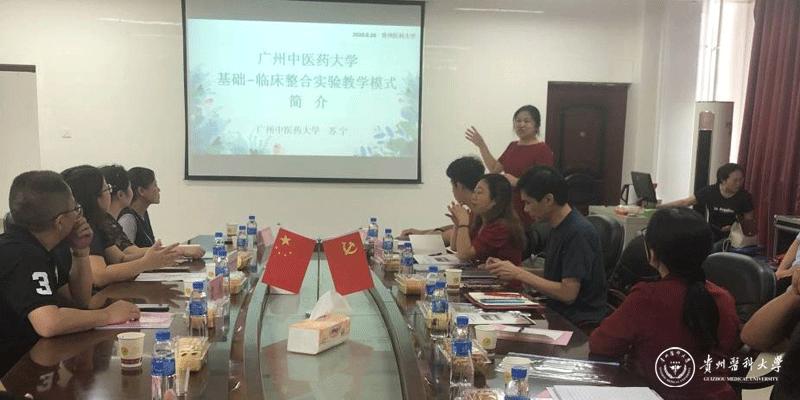 8月28日,广州中医药大学苏宁教授一行10人来太阳成基础医学国家级实验教学示范中心参观交流,副校长曾柱出席会议,基础医学院党政领导、相关科室、临床医学院教师代表、实验教学中心教师代表参加本次交流活动,会议由基础医学院党委副书记王妤煜主持。
