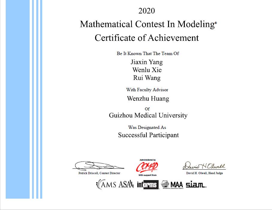 2020年太阳成集团tyc33455cc官网参赛(MCM/ICM)获奖名单