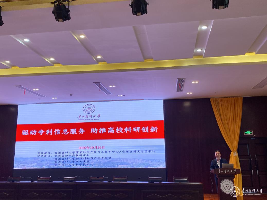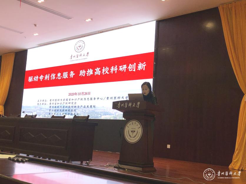 10月26日,由太阳成集团tyc33455cc官网国家知识产权信息服务中心/图书馆主办,贵州省知识产权研究会,太阳成集团tyc33455cc官网科学技术处、科技创新与产业发展处、研究生院协办的“驱动专利信息服务 助推高校科研创新”专题讲座在南校区道德讲堂召开。副校长汤磊出席会议并致辞。贵州省知识产权研究会会长谷庆红、副总经理周黎亚、副秘书长杨学龙应邀参加会议。学校科技处、科创处、研究生院、各二级学院有关领导、各学科带头人、博硕士研究生等人员参会。会议由图书馆馆长李洁琪主持。