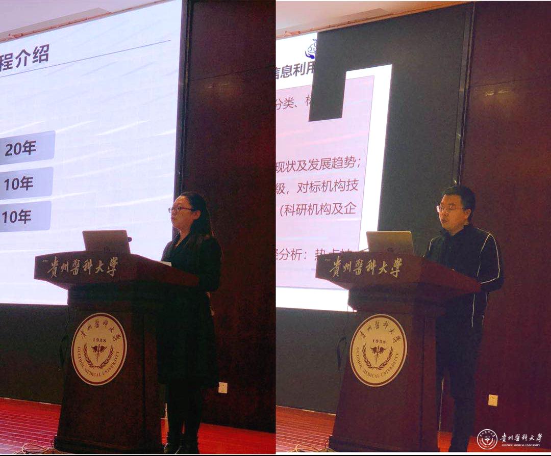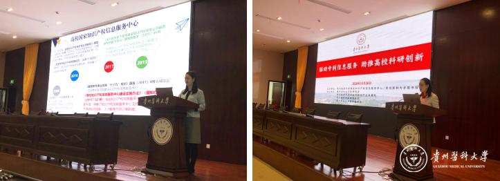 在专题讲座部分,会议邀请到了贵州省重大经济活动知识产权评议专家、贵州省知识产权侵权判定专家周黎亚,贵州省知识产权专家库入库专家、贵州省知识产权分析评议专家杨学龙为与会师生作专题报告。周黎亚作题为《科研项目专利挖掘实例》的报告,对专利申请流程进行了详细的介绍,并针对研发项目的专利挖掘、基于课题/工作环境的专利挖掘案例开展实例介绍,最后对科研过程中哪些方面可以形成专利,如何充分的利用专利信息等进行概括,做了一场专利申请普及教育。杨学龙作题为《高校专利信息利用实务》专题讲座,从高校在创新发展规划的制定、科研项目管理、产学研合作与协同创新、重大科研成果的专利挖掘与保护布局、科技成果转化、专利资产管理与维护、专利竞争力评价等方面如何利用好专利信息展开,强调了利用专利信息服务为科研工作者提供知识产权保障的目的、方法和重要性。