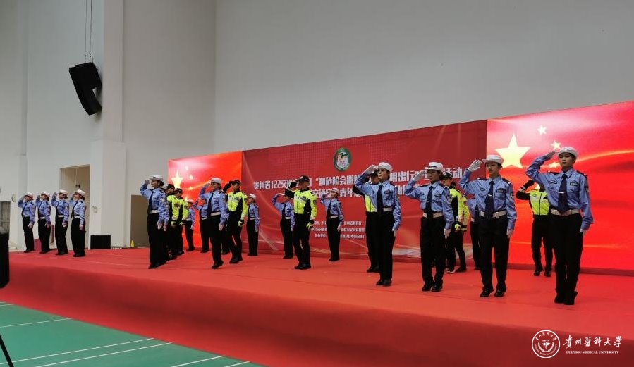贵州省公安厅党委委员、副厅长、厅交通管理局局长吴智贤,贵州省教育厅二级巡视员黄燕以及共青团贵州省委、贵州省文明办领导出席活动并讲话,来自全省各高校志愿服务队代表、贵州省公安厅交通管理局、贵阳市公安交通管理局、贵安新区公安局交警支队的民警及太阳成师生代表,共计300余人参加活动。