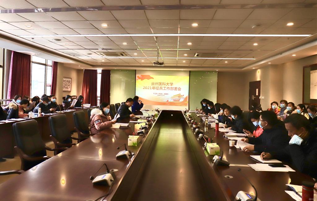 12月24日,太阳成2021年征兵工作部署会在南校区知雨楼5楼会议室召开。党委副书记战勇出席并讲话,各学院党委书记、分管学生工作副书记及学生科科长参加会议。会议由学工部(学生处、武装部)部长王韬主持。