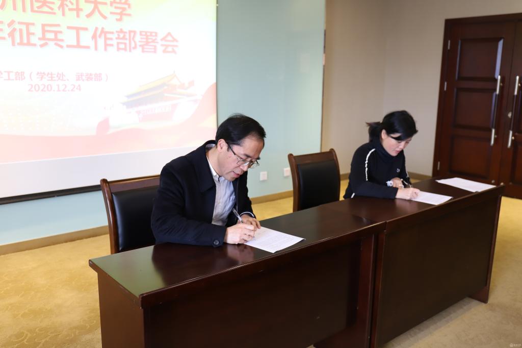 最后,战勇代表学校与各学院党委书记签订《2021年征兵工作责任书》。