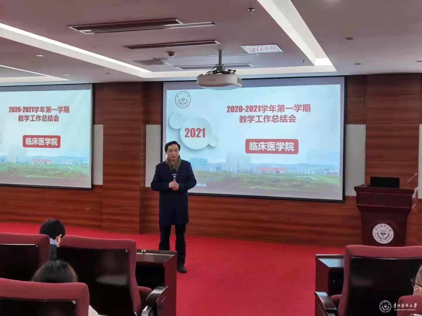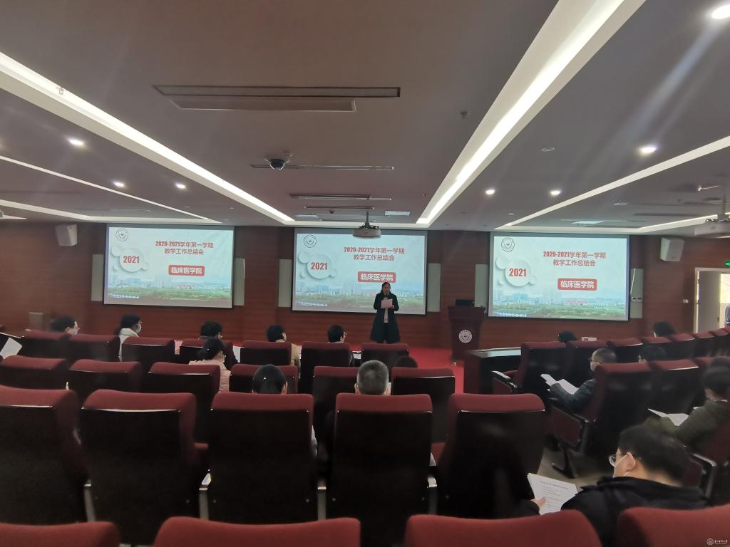 周红书记表示,一年来,临床学院教职员工较好地完成了各项任务,做出了可喜的成绩,非常感谢大家的辛勤付出。戚璐副院长对临床医学院2020年教学工作、双一流建设工作进行了总结,充分肯定了各教研室的教学工作,希望今后继续努力提升教学质量、加强教学改革。随后安排了寒假临床技能大赛及“协和班”导师遴选事宜。穆茂详细介绍了临床技能比赛。王晓燕布置了2020-2021学年第二学期教学相关工作。苗菁总结和介绍了2016级学生实习工作,并对2017级学生实习作出安排。马燕萍介绍了第四聘期相关工作。王筑山安排了研究生管理的相关工作,并强调学生安全管理问题。田静文介绍了中科医库使用情况。