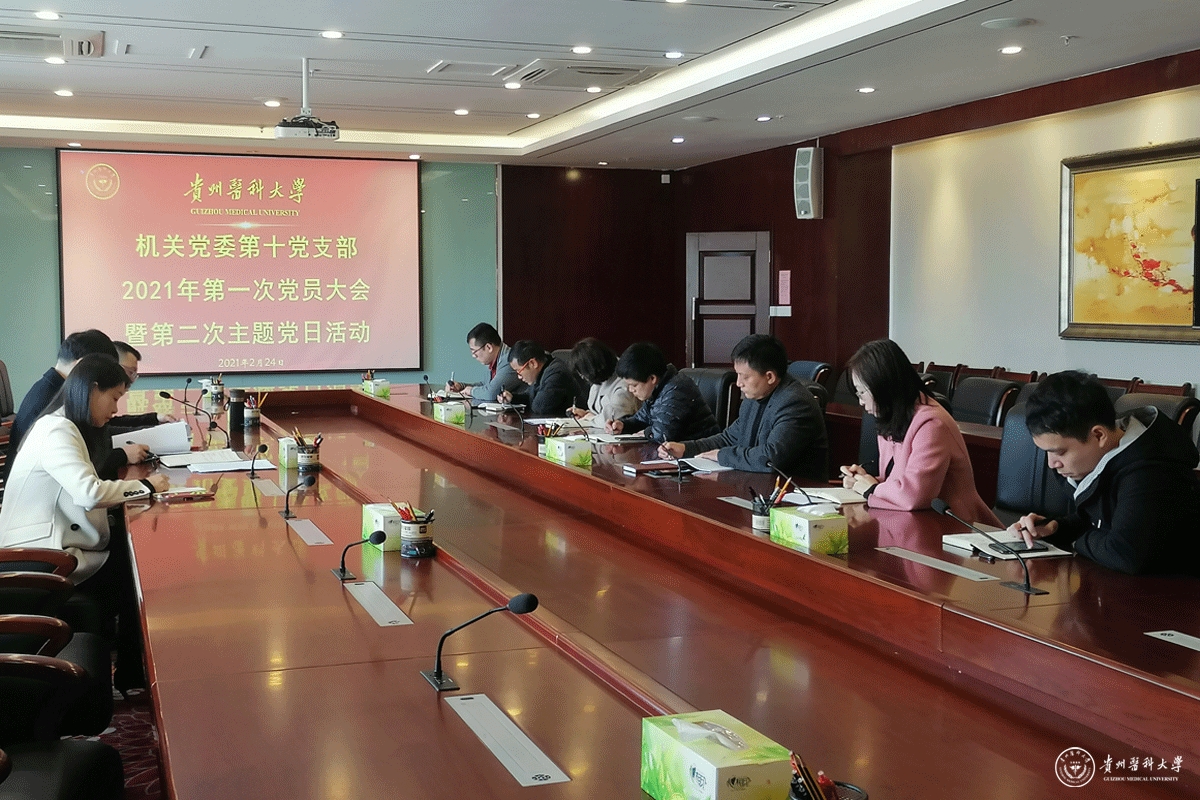 2月24日,机关党委第十党支部在知雨楼六楼会议室召开2021年第一次党员大会暨第二次主题党日活动,校党委副书记、校长罗鹏以普通党员身份参加。第十党支部书记孙西凌领学了习近平总书记贵州考察重要讲话重要指示精神、贵州省委、省政府学习贯彻习近平总书记考察贵州重要讲话重要指示精神。罗鹏同志传达学习“全省县以上党政主要领导干部学习贯彻党的十九届五中全会和省委十二届八次全会精神研讨班”精神和学习心得体会。
