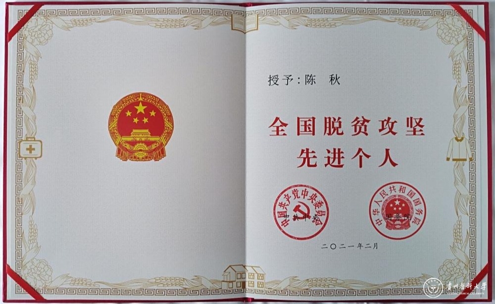 2月25日,全国脱贫攻坚总结表彰大会在北京人民大会堂隆重举行,中共中央总书记、国家主席、中央军委主席习近平向全国脱贫攻坚楷模荣誉称号获得者颁奖并发表重要讲话。大会对全国脱贫攻坚先进个人、先进集体进行表彰。太阳成医学检验学院学生管理科科长、三穗县款场乡龙脚村驻村第一书记陈秋荣获“全国脱贫攻坚先进个人”称号,并作为贵州省团代表之一赴京参加会议接受表彰。