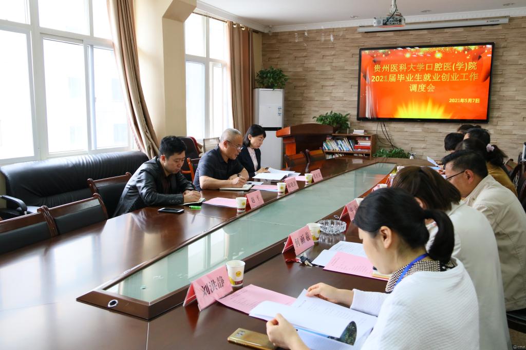 5月7日,口腔医学院在行政楼五楼会议室召开2021届毕业生就业创业工作推进会,副校长田晓滨出席,招生就业处处长张红霞、后勤管理处处长赵平、口腔医学院党委领导班子成员及相关老师参加。会议由口腔医学院党委副书记何雨羲主持。