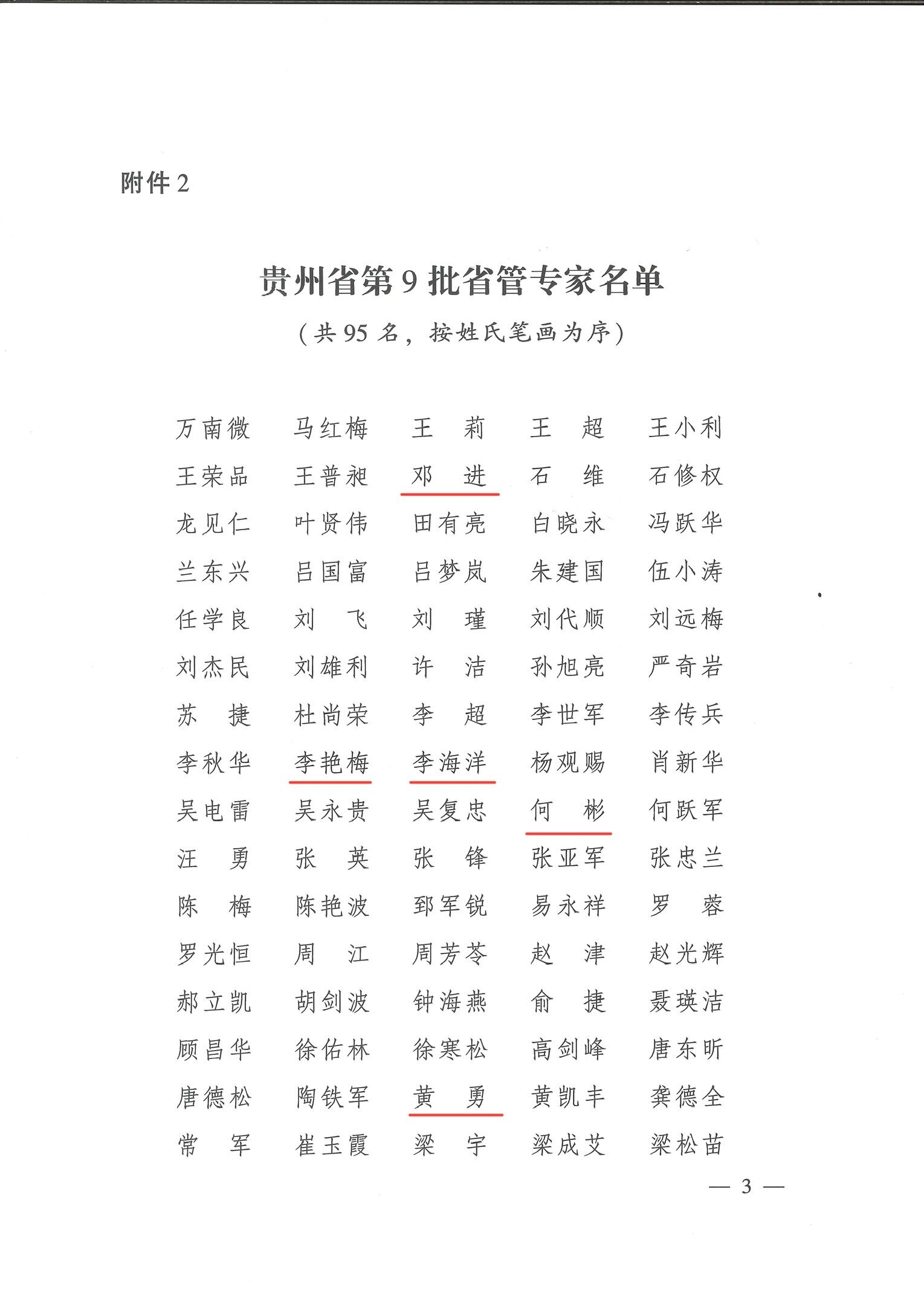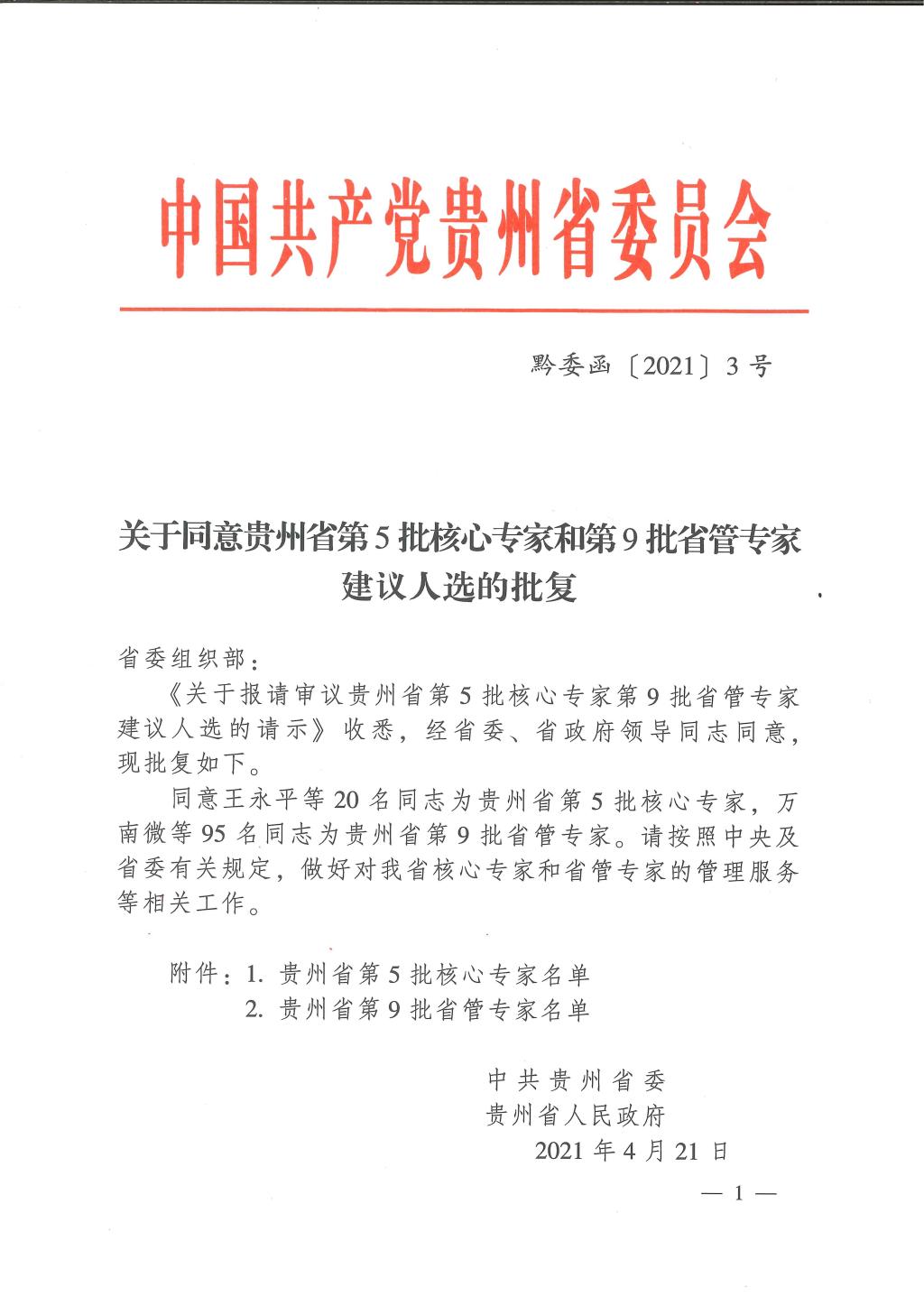 近日,中共贵州省委、贵州省人民政府批准通过贵州省第5批核心专家和第9批省管专家名单,太阳成汤磊、沈祥春被评为“贵州省第5批核心专家”,李海洋、曾柱、邓进、舒莉萍、何彬、黄勇、李艳梅被评为“贵州省第9批省管专家”。截至目前,太阳成共有贵州省核心专家8人、省管专家20人。