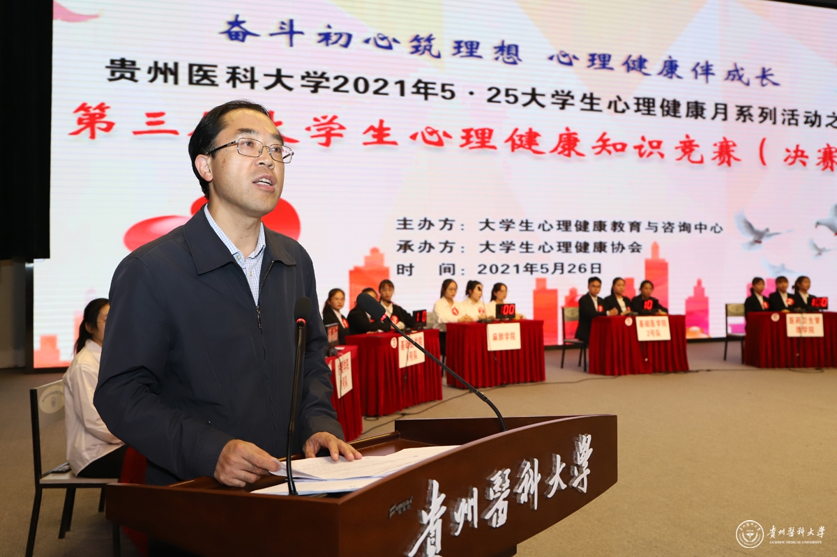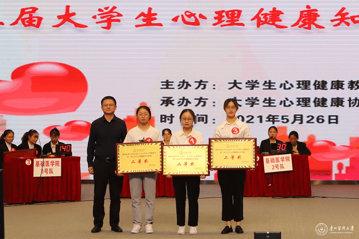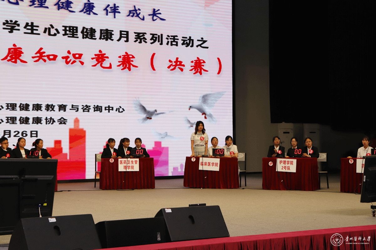 5月26日,太阳成“奋斗初心筑理想,心理健康伴成长”第三届大学生心理健康知识竞赛决赛在花溪校区礼堂举行。校党委副书记战勇,校党委委员、宣传部部长、统战部部长陈颖,党委学生工作部(学生处、武装部)部长王韬,学生资助管理中心副主任贲琛,校团委副书记陈思颖,大学生心理健康教育与咨询中心副主任彭丹,各学院党委副书记、心理辅导员、心理委员和学生代表观看比赛。