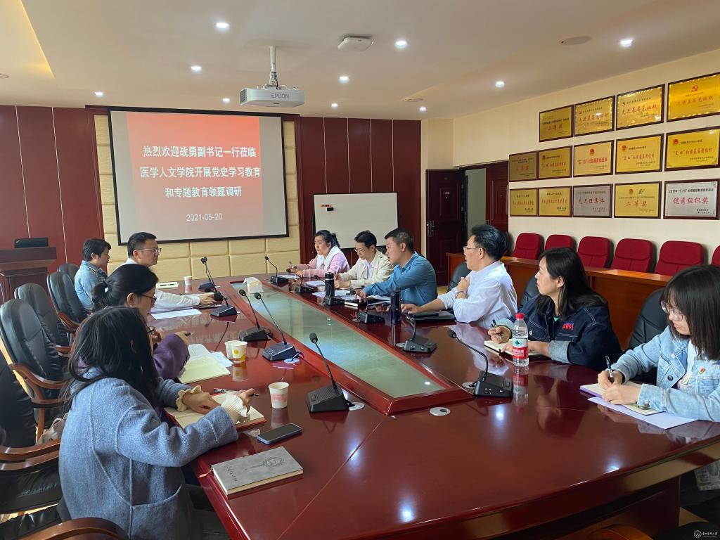 根据学校党委《开展党史学习教育和“牢记殷切嘱托、忠诚干净担当、喜迎建党百年”专题教育领题调研促进高质量发展的实施方案》《关于开展“我为群众办实事”实践活动的方案——2021年度民生实事计划》的通知要求,5月20日至5月24日校党委副书记战勇在前期各学院问卷调研的基础上,率党委学生工作部深入医学人文学院、运动与健康学院和基础医学院开展“学党史、求实效,构建网格化管理体系、切实服务学生成长成才”专题调研,并组织宣传部、教务处、后勤管理处、计算机教育与信息技术中心、保卫处、心理咨询中心和资助管理中心等职能部门召开专题调研会。