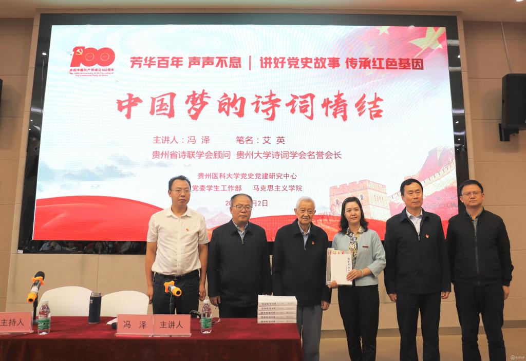 6月2日,为进一步深入开展党史学习教育暨“牢记殷切嘱托、忠诚干净担当、喜迎建党百年”专题教育,由学校党史党建研究中心、党委学生工作部、马克思主义学院组织的“芳华百年,声声不息——讲好党史故事,传承红色基因”之中国梦的诗词情结专题讲座在广德楼6楼电教中心举办,贵州省诗联学会顾问、贵州大学诗词学会名誉会长冯泽教授主讲,学校原党委书记赵明仁教授亲临现场,讲座由副校长曾柱主持,太阳成全体辅导员及学生代表参加。