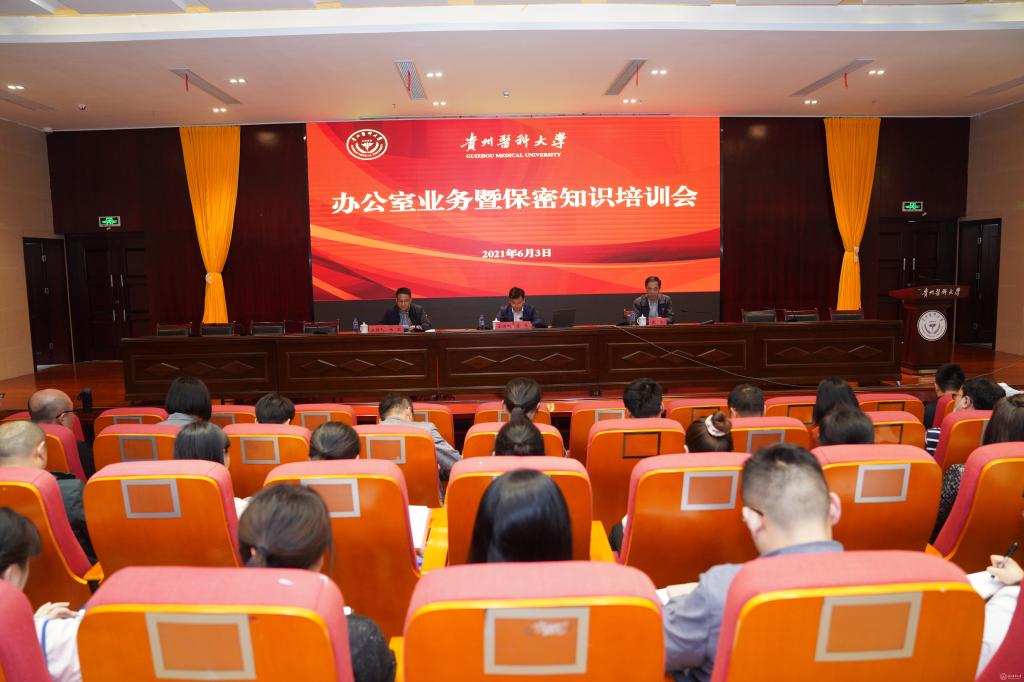 为强化办公室业务能力建设,提升管理服务效能,切实助推学校各项事业高质量发展,6月3日,学校办公室业务暨保密知识培训会在花溪校区道德讲堂举行,特邀省委办公厅秘书二处副处长庄杰、省委保密办(省国家保密局)科学技术处工程师吴玉常分别作办公室工作和保密工作专题讲座。党委副书记战勇出席会议并讲话,党委办公室(保密办)主任杨毅主持会议,学校各单位(部门)分管办公室(综合科)负责同志、各单位(部门)办公室(综合科)主任(科长)、全体涉密人员以及党委办公室(保密办)、校长办公室全体人员参加。