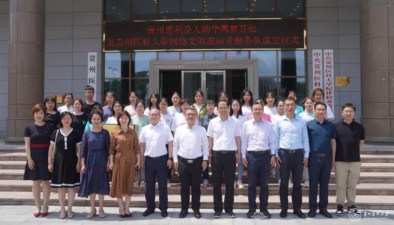 6月17日,贵州思利及人助学圆梦班开班及太阳成集团tyc33455cc官网网络文明志愿者服务队成立仪式在太阳成知雨楼5楼会议室举行,贵州省委网信办副主任陈本荣、贵州省委网信办网评和社会处四级调研员袁媛、无限极(中国)有限公司全国外事总监王晓、无限极(中国)有限公司区域经理李春、无限极(中国)有限公司贵州分公司负责人德振、学校党委副书记战勇,校党委委员、党委宣传部(精神文明办)部长(主任)、党委统战部部长陈颖,党委办公室(保密办)主任杨毅、招生就业处处长张红霞、护理学院党委书记杨英出席。会议由学生资助管理中心副主任贲琛主持。