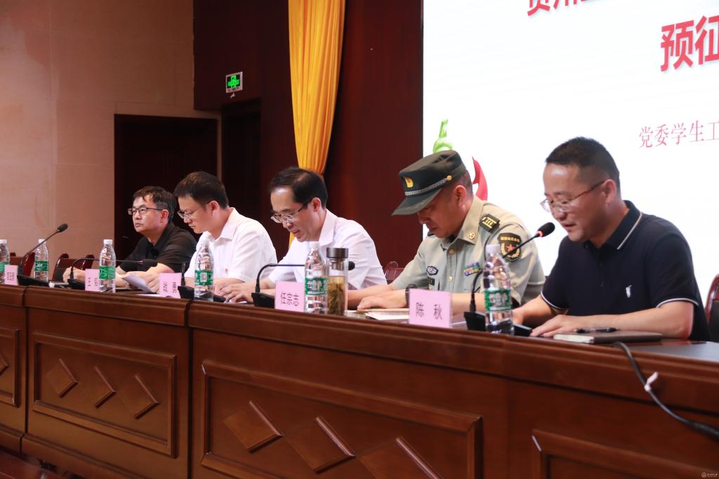 为积极适应“一年两次征兵”改革形式要求,进一步突出高校征兵主阵地功能,更好地向部队输送高素质人才,储备优质兵源,党委学生工作部(学生处、武装部)于6月23日在南校区道德讲堂举行大学生应征入伍预征班开班仪式。校党委副书记战勇出席并讲话,云岩区武装部部长任宗志、党委学生工作部部长王韬、云岩区人民医院宫玉勇、部分辅导员及预征班全体学员参加。仪式由党委学生工作部(学生处、武装部)副部长陈秋主持。