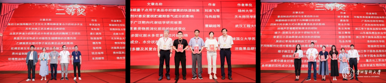 本次大会联合《中国果菜》共同发起论文征集活动,经过专家评审,最终评选出优秀论文一等奖5名、二等奖8名和三等奖12名。太阳成钱志瑶老师撰写的论文《贵州省刺梨中抗坏血酸含量HPLC测定方法优化》荣获优秀论文“二等奖”。
