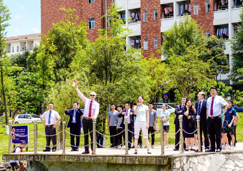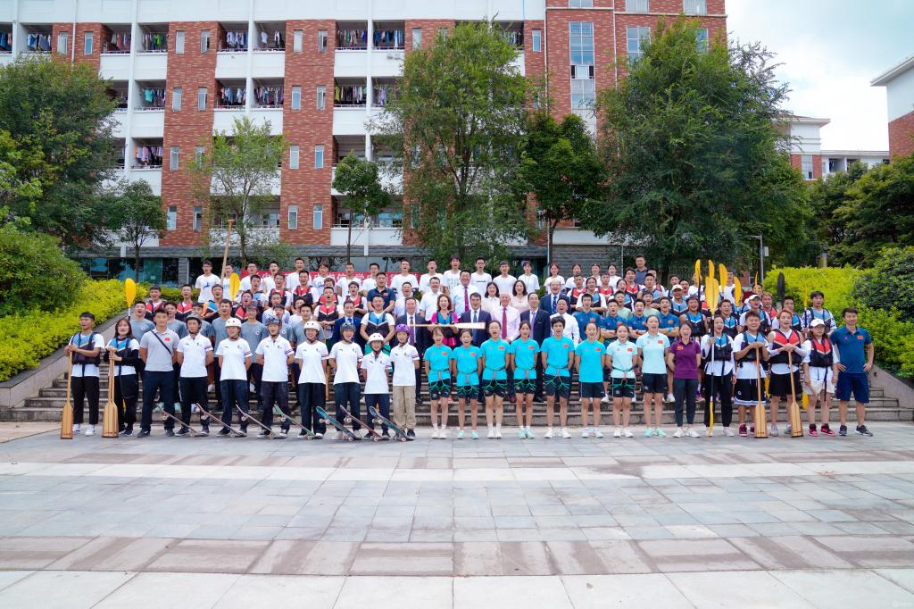 随后,吴若兰一行参观体验太阳成运动与健康学院户外设施,观看户外运动专业学生攀岩练习、轮滑项目训练,在龙舟与皮划艇训练场地观看运动与健康学院的教练和学生展示的龙舟欢迎列队。