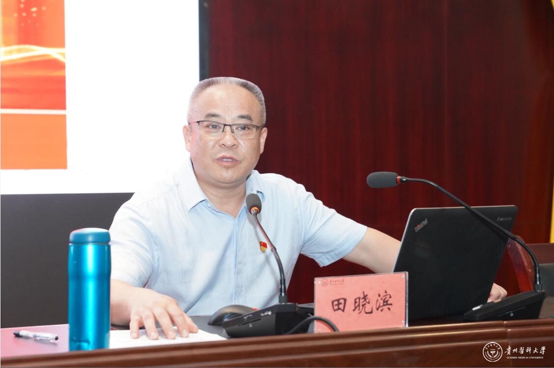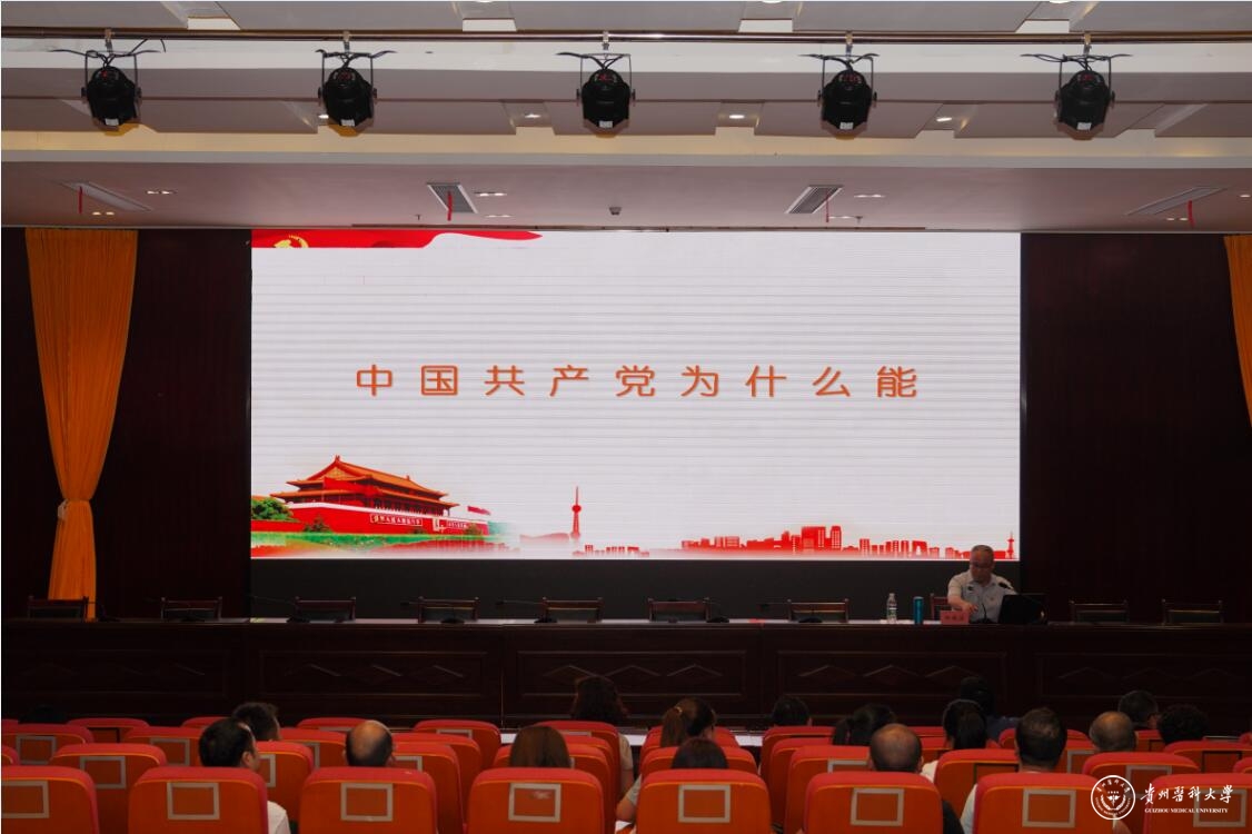 7月14日,副校长田晓滨在南校区道德讲堂讲授题为《中国共产党为什么能》的专题党课,基建处、财务处、后勤管理处党总支全体党员参加,基建处党支部书记朱贵阳主持。