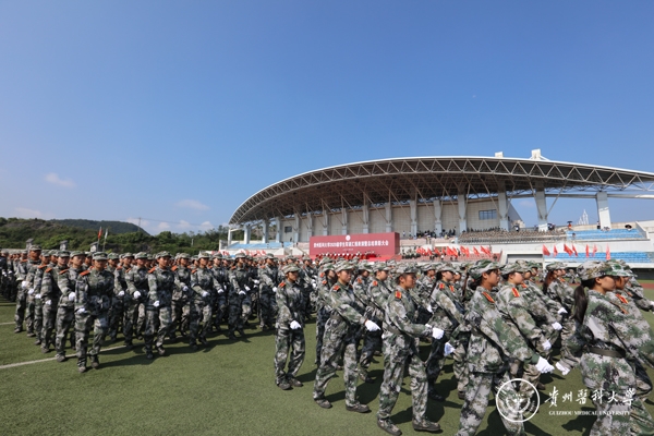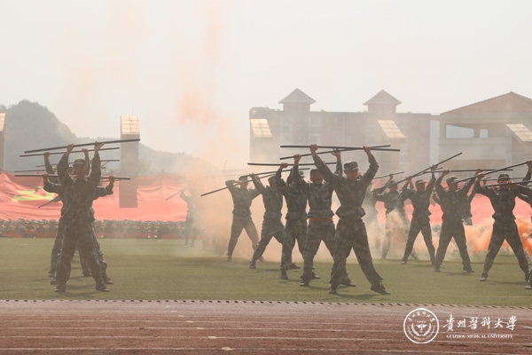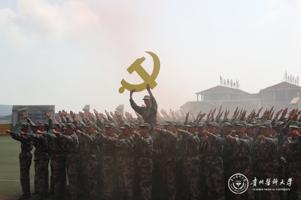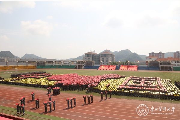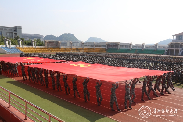 军事特色方阵表演完后,三千五百人的拼字方队跟随指挥官指令,在激昂澎湃的音乐声中首先拼出了“太阳成集团tyc33455cc官网热烈庆祝中国共产党成立100周年”字样,表达了对党的热爱与祝福;接着作为贵医学子,他们拼出“诚于己,忠于群,敬往思来”的校训;而作为预备役医生,他们又以“中国医生,救死扶伤,健康所系,性命相托”的医学生誓言字阵以及由爱心、医生、药瓶、注射器组成的图阵诠释着学医的初心;最后,八一军旗与中国地图的出现,更是将全场氛围推至高潮。同学们一遍遍“中国一点都不能少”的呐喊声,饱含着对祖国深切的爱以及对祖国的坚定信心,赢得领导与观众们雷鸣般的掌声。