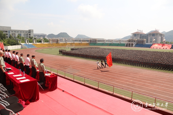 7月30日,2020级学生军训汇报表演暨总结表彰大会在南校区体育馆运动场举行。校领导罗鹏、罗俊、陈代勇、曾柱、汤磊,贵阳警备区战建处处长唐田上校出席大会。学校各职能部门负责同志、各学院分管学生工作副书记和全体2020级学生参加大会,大会由党委委员、副校长、军训师师长曾柱主持。