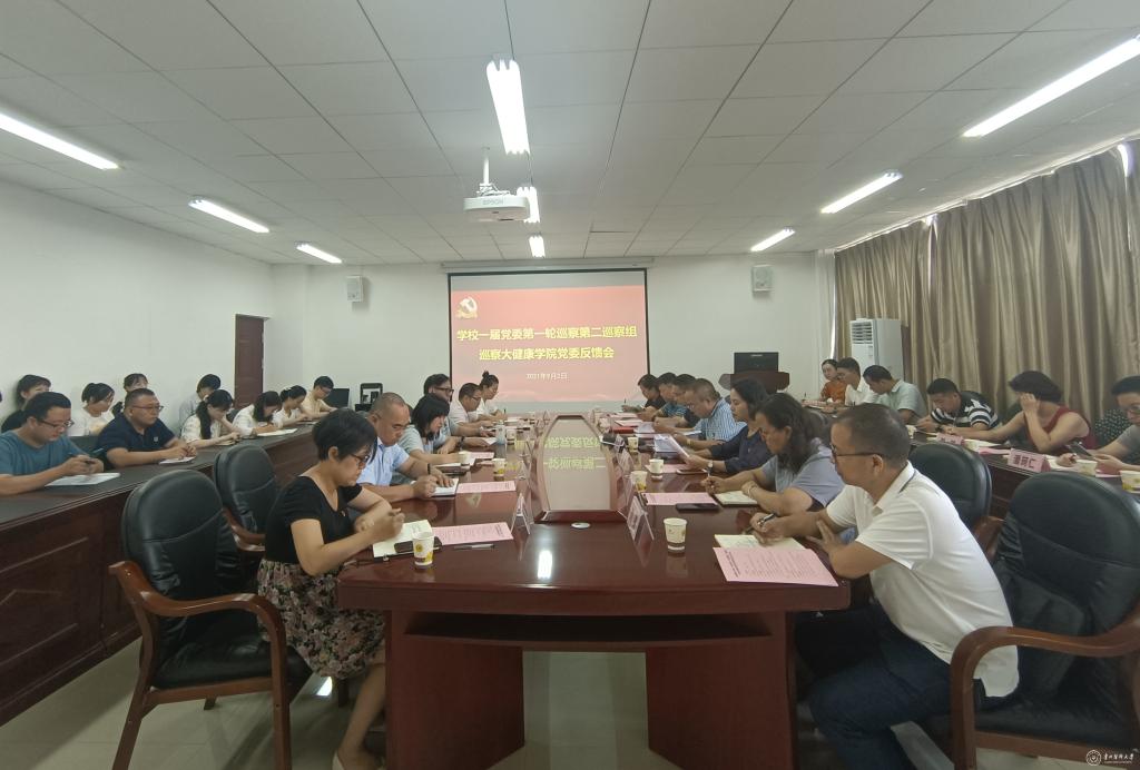 9月2日,学校第一届党委第一轮巡察第二巡察组向大健康学院党委反馈了巡察情况反馈会。副校长曾柱出席反馈会,第二巡察组组长杨英代表巡察组反馈巡察情况,党委办公室(保密办)主任杨毅传达了学校党委巡察工作领导小组暨书记专题会议精神,大健康学院党委主要负责同志桂晓玲主持反馈会议并就做好巡察整改作表态发言。党委组织部副部长、党校常务副校长李红,校纪委、省监委驻校监察专员办第二纪检监察室副主任杜胜鹏,第二巡察组全体人员,大健康学院党政领导班子成员出席,大健康学院各部门、各教研室有关负责同志及教师代表列席。