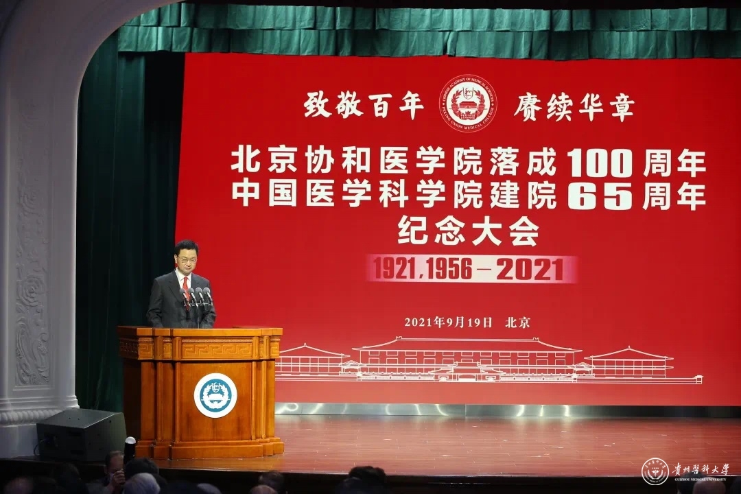 清华大学校长邱勇院士致辞,国家卫生健康委员会主任、党组书记马晓伟,全国政协副主席兼秘书长李斌,全国人大常委会副委员长陈竺分别发表讲话,向北京协和医学院建院100周年和中国医学科学院建院65周年表示祝贺。