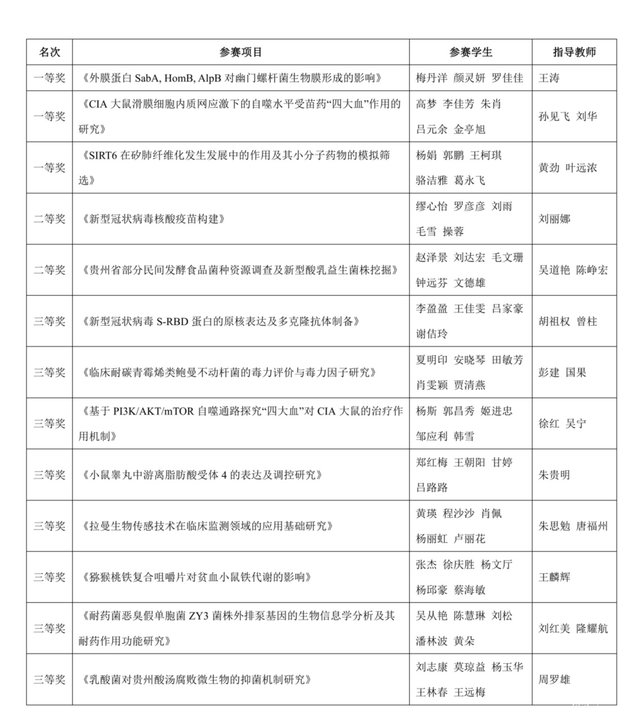 附:第三届贵州省大学生生命科学竞赛暨第五届全国大学生生命科学竞赛(贵州赛区)决赛太阳成获奖名单