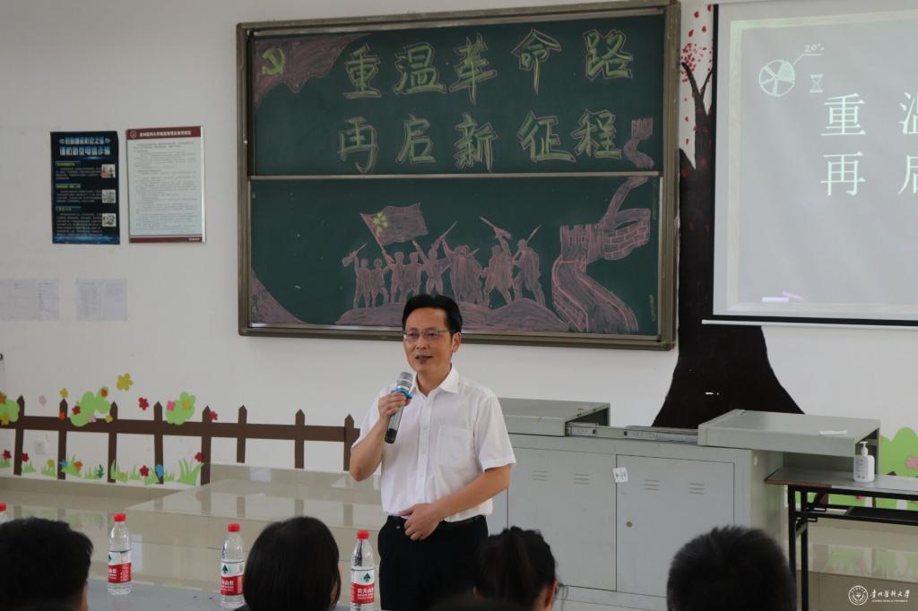 陈代勇首先参加了2019级麻醉班“重温革命路,再启新征程”主题班会活动,并鼓励大家认真学习习近平总书记对青年的寄语,强调当代大学生应珍惜韶华、奋发有为,努力成才,将学习成长同党和国家的事业紧紧联系起来,同社会和人民的需要密切结合起来,为实现中国梦奉献智慧和力量。