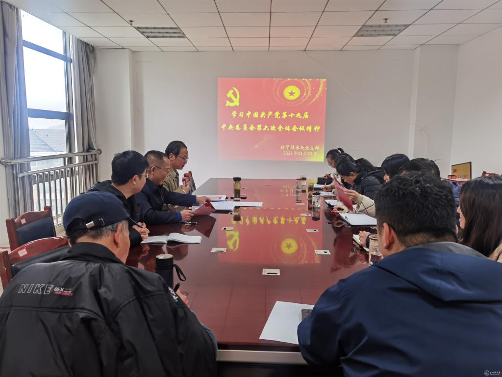 11月22日,科学技术处党支部在知雨楼召开会议,集中学习党的十九届六中全会精神。副校长曾柱以普通党员身份参加。会议由支部书记郭兵主持。