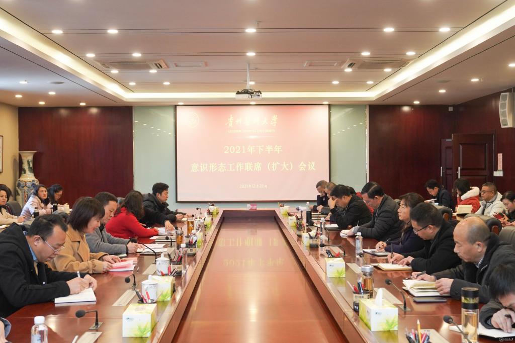 陈颖在主持会议时通报了今年意识形态工作情况,她指出,要严格按照中央、省委、省委教育工委、省教育厅关于意识形态工作的部署要求,严格落实意识形态工作责任制,把解决意识形态工作专项督查中发现的问题作为推动工作的重要抓手,坚持以科学的理论武装人,以正确的舆论激励人,以优秀的作品鼓舞人,内聚人心,外树形象,展现学校的新成就、新气象、新风貌,把宣传思想工作、意识形态工作与推进学校改革发展工作统一起来,不断巩固和发展学校意识形态领域的良好态势,确保全校意识形态安全和政治安全,营造良好思想舆论环境。