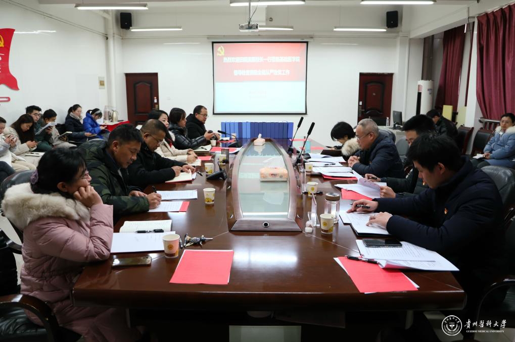 12月27日,学校党委全面从严治党主体责任落实情况第五督查组到基础医学院开展2021年度全面从严治党主体责任落实情况督导检查。副校长田晓滨,人事处副处长朱俊伟,临床医学院副书记王筑山,省纪委、省监委派驻太阳成纪检监察组综合室综合科科长雷豪到基础医学院党委实地督导检查。基础医学院党委班子成员,学院各科室、教研室负责人、支部书记、全体辅导员参加。会议由学院党委副书记张贤主持。