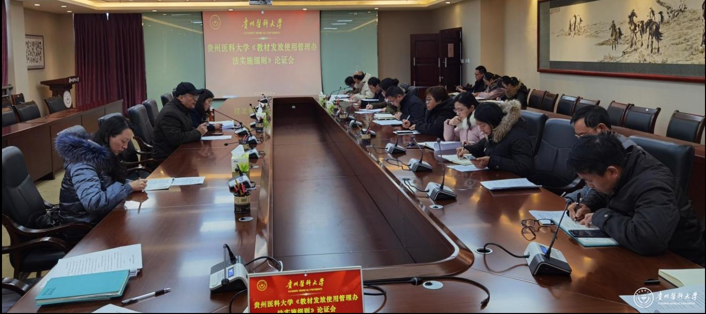 12月29日,《太阳成集团tyc33455cc官网教材发放使用管理办法实施细则》论证会在知雨楼5楼召开,副校长蒋红梅,省纪委省监委派驻太阳成纪检监察组、党委宣传部、教务处、学生处、后勤管理处、保卫处、基础医学院、临床医学院、公共卫生与健康学院、护理学院、口腔医学院、生物与工程学院、医药卫生管理学院、医学人文学院、麻醉学院等相关负责人和管理人员参会,会议由教务处处长温小军主持。会议就教务处起草的《实施细则》草案进行论证。
